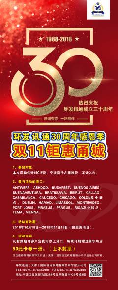 名稱:環(huán)發(fā)訊通30周年感恩季-雙11鉅惠甬城